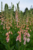 (Digitalis purpurea) AKA “Suttons Apricot” and simply “Apricot’. We know how hard waiting can be. Accustomed to the instant gratification that assails us daily, waiting is an almost extinct leap of faith. Apricot Beauty is well worth the wait for a second-year bloomer. Worth the magnificent 4-5’ tall flower spikes that are a coral-apricot color at bud stage, opening into the softest of pinks with customary interior dark speckling. Each plant has at least 5 spikes so you will be richly rewarded for your efforts. You can also think of them as a Victory Garden for bees and other small insects! Your generosity is astounding. Blooms second year.