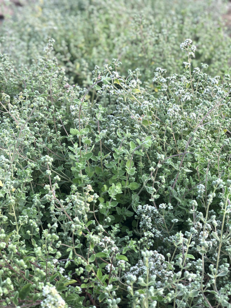 (Origanum syriacum) Za'atar is the wild oregano of the Levant, used in the eponymous seasoning mix of the same name (with sumac, thyme, ground, sesame, salt etc). A wild plant often growing in rocky, hilly soils from Egypt to Jordan, it is central to the cuisine and culture of the area. The flavor is a warming and pungent melange of oregano, marjoram, and thyme notes. An evergreen, tender perennial it prefers well-draining soil and doesn't love wet feet combined with freezing temps. In very cold, wet areas, it can easily be grown as an annual. We find it to be fast growing and a wonderful addition to our kitchen herb garden, used to season flatbreads and vegetables, and crushed in olive oil, makes a lovely dip for bread.