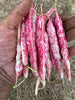 (P. vulgaris) A family heirloom from one of the six original members of the Seed Savers Exchange (now the largest public participation heirloom seed organization in the world). These beans are said to have been brought by Lina’s grandmother to Missouri by covered wagon in the 1880s. Delicious smooth texture and rich flavor for soups or on their own. Terrific variety to freeze as shelly beans for wonderful winter meals! Horticultural type.
